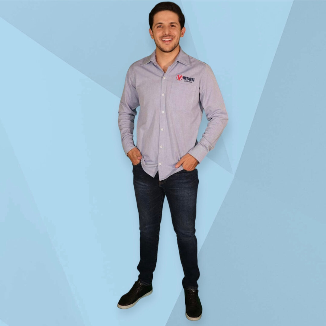 Nuestra camisa está compuesta de 65% poliéster y 35% algodón. El corte de la camisa es moderno con cuello sport, permite realizar tus actividades, cuenta con botón en ambos puños y para tu mayor comodidad cuenta con 1 bolsa superior en la parte izquierda